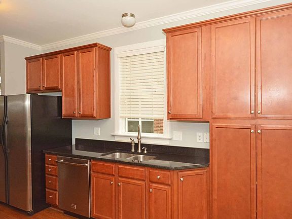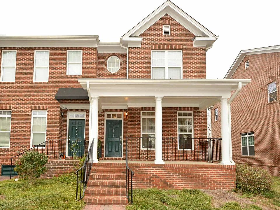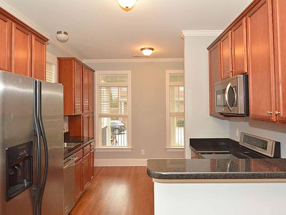 This is a beautiful townhouse with 9 foot high ceilings and hardwood floors downstairs. Each of the carpeted upstairs bedrooms has a private bathroom and ample closet space. The laundry room with a washer and dryer is also located upstairs. The kitchen has black granite countertops and stainless steel appliances including a stove, refrigerator, microwave and dishwasher. There are gas logs in the fireplace and lots of windows in the living/dining area. An enclosed back patio and covered front porch provide outdoor living without much upkeep. What a great place to live near downtown and in the Mordecai historic area! Renter pays all utilities and owner pays HOA fees. One dog under 50 pounds is allowed with a one time pet fee of $300. Small fenced in back courtyard. Renter's insurance required.