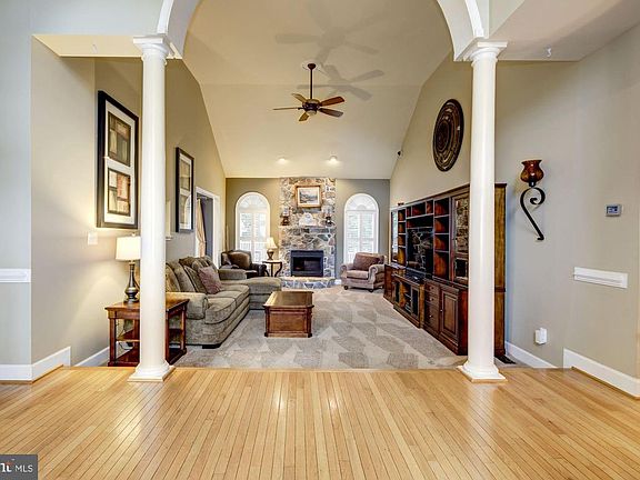 Enjoy your dream vacation without ever leaving home! This stunning estate rests on over 3 acres of lush landscaped grounds on a tree-lined cul de sac in Woodbine. Ten-foot arched doorways, architectural columns, and soaring vaulted ceilings welcome you and your guests to delight in elegant detail mixed with casual living throughout. The grand foyer opens to a spacious living room highlighting a floor-to-ceiling stone fireplace. A formal dining room, with its chair railing, laid hardwood floor, and high ceiling creates the perfect ambiance for intimate gatherings. Prepare your favorite meals in the gourmet kitchen boasting 42-inch white cabinetry, high-end stainless steel appliances, custom tile backsplash, and beautiful granite counters with an adjacent breakfast room that offers deck access and a built-in fish tank! The expansive primary suite, highlighting a cathedral ceiling and stone fireplace, includes a den, a custom walk-in closet, a personal deck and a private stairway to the lower level. Sublime relaxation in the luxury en suite bath featuring a whirlpool tub, frameless shower, and double vanities. Endless entertainment options are found in the fully finished lower level including a fitness room, spa room, a small game room, and a media room complete with built-in sound system and 8-person recliners. In addition, a large game room with a wet bar and a family room featuring a stone fireplace and access to the yard. A bonus room/potential 5th bedroom and spacious laundry room complete the lower level. Follow the custom slate walkway to the finished detached garage that offers an upper-level guest suite including a full bath and kitchen. Updates include hot water heater, new carpet, A/C, and more!