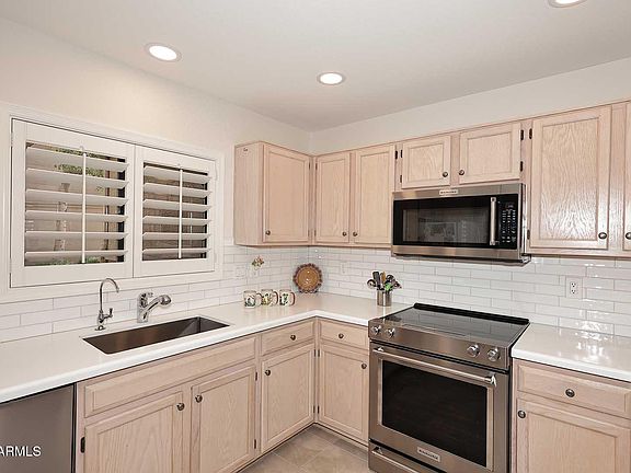 Ground Floor End Unit For Added Privacy Meticulously Maintained Seller Owned Since 2000 Lightly Lived In Thoughtfully Updated Move In Ready. Prestigious N Scottsdale Gated Community Elegant & Classy Shutters Throughout. Spacious Light Bright Split 2 Bedroom/2 Bath + Large Den Could Be 3rd Bedroom. Eat-In Kitchen Durable Quartz Counters Tiled Backsplash Newer Appliances. Opens To Great Room With Cozy Fireplace. Primary Bedroom W/Oversized Updated Walk-In Shower Large Walk-In Closet Exit To Serene Peaceful Private Patio Overlooking Lush Greenery. All Windows replaced (See Document Tab For Updates). Enjoy Year Round Heated Pool/Spa Prime Location 2 Miles From ''Gateway Trailhead'' (Fabulous Trails) Convenient to Grocery Restaurants Shopping Horizon Park Easy Access 101 Freeway. A MUST SEE!