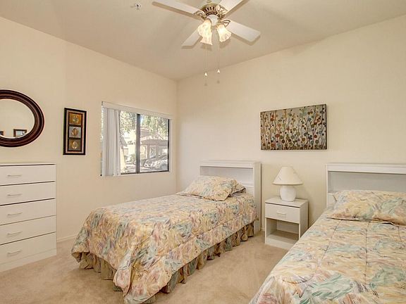 This is one of the best units in the complex. Original owners & very gently used. Owners only used this a few months out the year. Perfectly located within a few steps from the pool. This unit is also unique because the patio has been screened in and the patio floor has been tiled, giving you more living space. Unit has newer carpet, newer blinds, tile flooring in all baths and large eat in kitchen. Two large bedrooms PLUS a den, living room & dining room, fireplace, double sinks in the master bath, extra storage off patio and more. Refrigerator is approx 2 years old & stackable washer and dryer are approx 3 years old. The condition of this home, the enclosed patio and excellent location make this ground floor unit one of the most desirable units of the neighborhood!