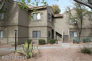 OPEN HOUSE SATURDAY 1 to4.Here's the one! Completely furnished with everything! First floor no steps. Hard to find two bedroom plus den and two bathrooms. Large patio on green space. Well cared for personal residence. Walk to AJ's, Walgreens and Starbucks. Close to West World, Scottsdale Library, and McDowell Mt. Golf Course.