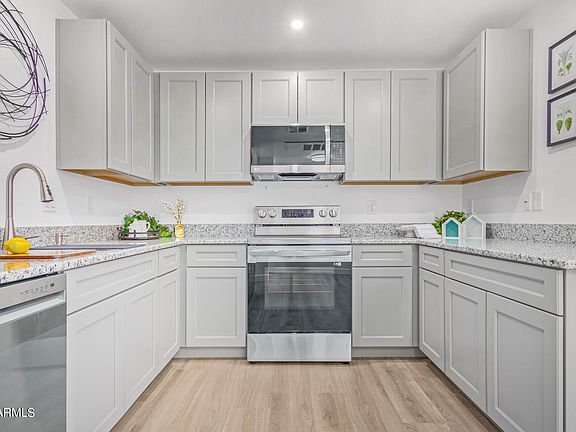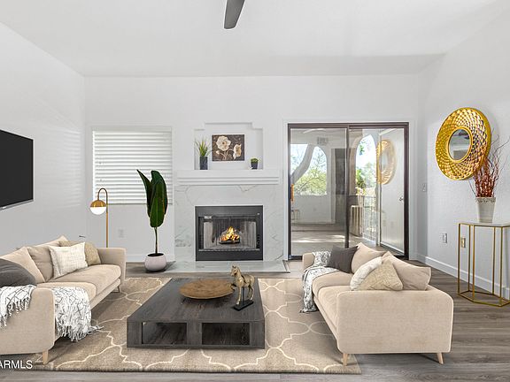 FInal Price Reduction! Welcome home to this newly REMODELED SCOTTSDALE beauty. Located in GATED Villages North, this charming GROUND FLOOR condo unit is the epitome of convenient living. Discover an open living & dining room complete with fireplace! Plank tile flooring, neutral paint, and abundant natural light create an inviting living space. The kitchen boasts a dining nook, sleek LG SS APPLIANCES, GRANITE counters, shaker cabinetry--all BRAND NEW! Versatile DEN can also be a third bedroom. Primary Suite has patio exit and spacious bath w/ separate vanities, step-in shower & walk-in closet. Relax on your private covered patio while enjoying the tranquil surroundings. Don't forget the community pools, spas, & tennis courts, and the nearby Scottsdale parks, shops & dining! This is not a flip! The sellers have owned for several years and just finished a full remodel for you! Gorgeous luxury finishes are waiting for you in this move-in ready home. Just add furniture and go have fun swimming, dining, shopping, golfing, hiking, or just hang out in your new place and listen to the birds sing in the trees outside your windows. Walk next door to Horizon Park or AJ's shopping center just across the street. This is perfect for year-round or seasonal living. Coveted North Scottsdale location close to the regional airpark, Kierland Commons, the 202, McDowell Mountains, and so much more! Lock and leave, and let the HOA take care of the rest!