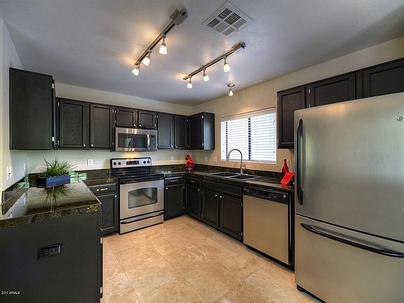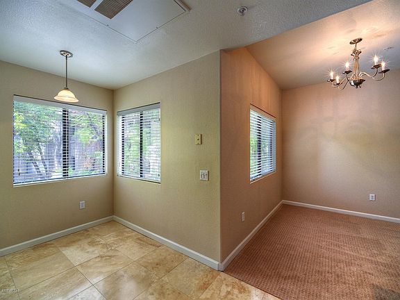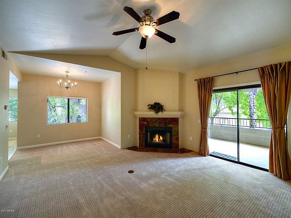 Located in popular Villages North, this beautiful 2 bedroom/2 bath condo has a split floor plan, soaring vaulted ceilings & dual zone A/C. You will appreciate the travertine, granite & tumbled marble finishes, new carpeting, fresh interior paint, and updated kitchen & baths. The eat-in kitchen has stainless appliances, granite counters & travertine tile flooring. The master suite has separate vanities with tumbled marble counters, walk-in travertine tile shower, walk-in closet and a sliding glass door to the covered balcony. The washer & dryer are included. Enjoy the cozy fireplace, the spacious covered balcony, the community tennis courts and heated community pool & spa. Scottsdale is famous for its world class golf, dining, shopping, live entertainment & nearby outdoor recreation areas.