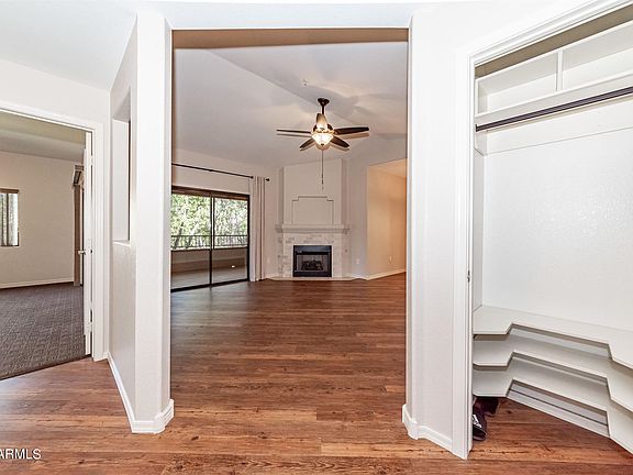 Well loved and meticulously cared for Condo in North Scottsdale with quick and easy access to the 101 yet nestled in close to the beautiful mountains of the McDowell Sonoran Preserve. This condo features the best courtyard view in Villages North. You may forget you are living in the desert with the abundance of green in the beautifully maintained courtyard. Condo features a screened in patio with sizable storage closet, split floor plan with large size bedrooms and spacious feel throughout, master bedroom has large walk in closet. Condo comes with newer appliances including a brand new LG stove with air fryer, new hot water heater in 2019, extensive remodel in 2018 including new fireplace, new granite counters and tile backsplash in kitchen, new tile floor in kitchen,