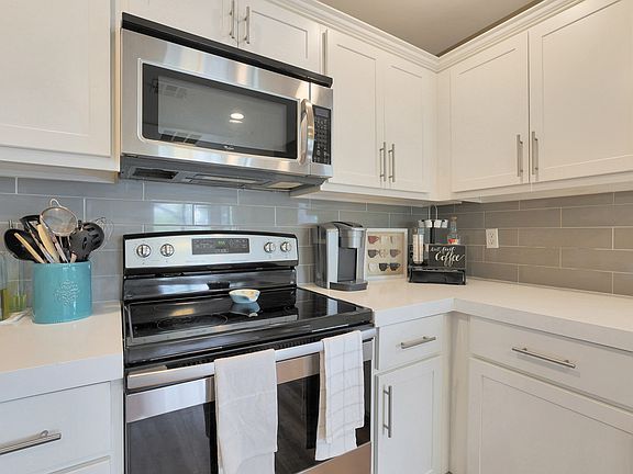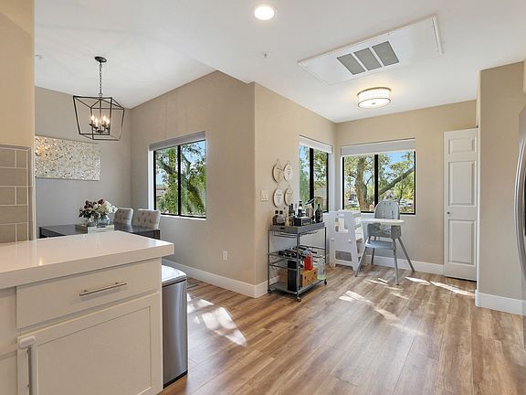This stunning condo features a brand-new AC unit installed in 2023. Located in a quiet neighborhood, it offers a light-filled, professionally remodeled interior with a sleek gray and white palette and wood-look floors throughout. The chef's kitchen includes new white cabinets, quartz countertops, a tiled backsplash, and stainless steel appliances. The master bath boasts a luxurious walk-in shower. With a master split floor plan, the home also includes a great room with a wood-burning fireplace. The gated community is within walking distance to shops, restaurants, and Horizon Park, plus residents enjoy year-round heated pools, spas, and tennis courts. Clean and well-maintained condo available now. Owner pays for water and garbage. Tenant is responsible for electricity. No smoking allowed on the premises. One covered parking space included. Flexible lease terms available; 6 to 12 months preferred.