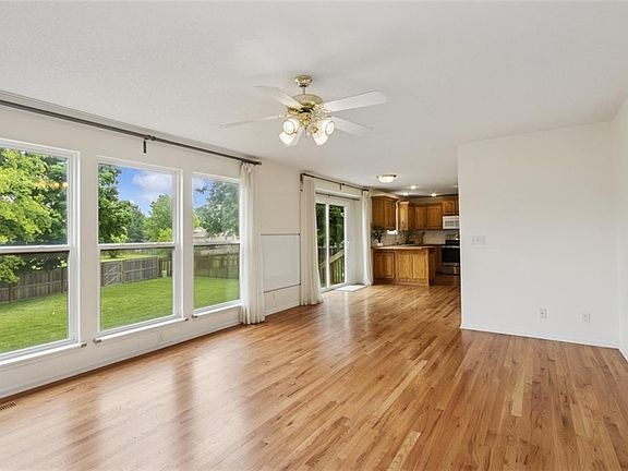 Nestled in a fantastic location, this home offers both comfort and convenience. Start your mornings with coffee on the inviting wrap-around front porch. Step inside to a bright, airy two-story entry and beautiful wood flooring that flows through the main living areas. The open-concept kitchen seamlessly connects to the great room-perfect for everyday living and entertaining. All kitchen appliances stay with the home! A new sliding door leads to the patio and an expansive backyard, which backs to greenspace owned by two churches-providing serene views with no rear neighbors. Upstairs, you'll find a spacious primary suite complete with a relaxing soaker tub, separate shower, and a generous walk-in closet. The finished lower level features a flexible family room, a full bathroom with shower, and a bonus room ideal for an office, media room, or home gym. The garage is extra deep with a workbench and additional storage space. Additional highlights include a new roof in 2024, a newer hot water heater, a sprinkler system to keep your lawn lush, and Google Fiber connectivity. All this with no HOA in this quiet pocket of The Willows--a rare find!