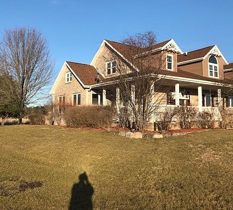 3300 sq ft custom built home situated on 4-7 acres, zoned ag. Soaring 20 ft ceilings in great room with stone fireplace. Large kitchen with granite counters, hardwood floors, stainless appliances and center island with breakfast bar. Impressive cabinets in kitchen and laundry. MBR with stunning bathroom and walk in closet. Man/Cave Office with garage and kitchen entrances. Country wrap around porch and large deck. Roof 4 yrs; flooring 2 years; siding and windows 1 yr. 3200 sq ft outbuilding with 2 ten foot overhead doors. All concrete floors, half heated with a full bath.