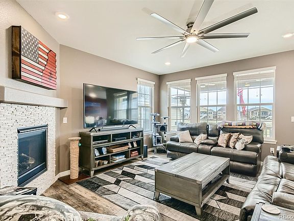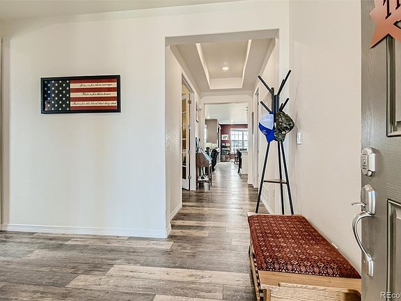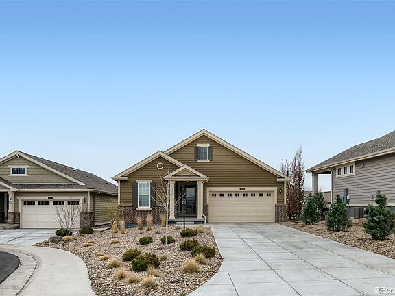 Backs to Golf Course! This gorgeous Lennar home was built in 2019 and has been meticulously cared for. Located on the golf course, this home provides great indoor and outdoor living. The main floor features a spacious great room with gas fireplace that opens into the beautiful kitchen with all stainless appliances, breakfast bar, slab granite counters, stained cabinets, pantry, and formal dining area. Retreat to the master suite that offers a tray ceiling, private bath with huge walk-in shower, and walk-in closet with access to the laundry room. A large secondary bedroom and full bath are perfect for family and guests. Utilize the study to work from home or use it as a 3rd bedroom with the built-in Murphy bed. The open basement allows you to finish additional living space to your specifications. Entertain company on your covered deck and stamped concrete patio with gas firepit overlooking the golf-course. This 55+community offers Colorado living at its finest. This is the perfect place to call home!