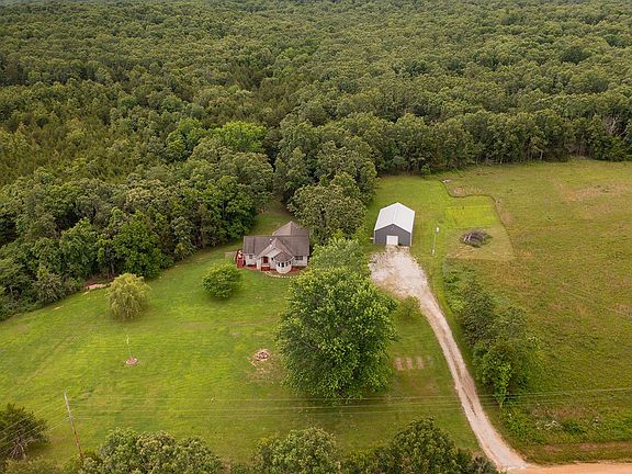Home with 64 acres nestled in the Ozarks! This beautiful property boasts four spacious bedrooms and three full bathrooms. The home features custom wood trim, solid doors and beautiful hickory hardwood floors that add warmth and charm to the interior. The heart of the home is the spacious kitchen with so much storage and counter space including a large pantry being an additional bonus. The lower level is where you will find one of the bedrooms, full bathroom, open family room area and additional space. The utility/laundry room offers even MORE storage space! There is a 48x30 shop with 220V power, LED lighting, concrete floors! There are Apple, Peach and Pear trees with as much space as you would like for gardening. The property with 64 acres of land, includes pasture, woods, pond and wet weather creek. NO RESTRICTIONS and LOW TAXES!