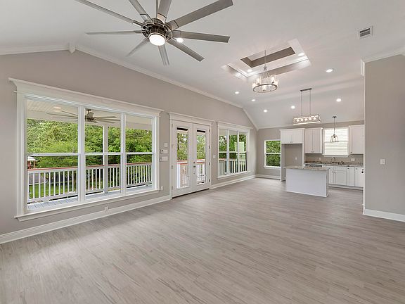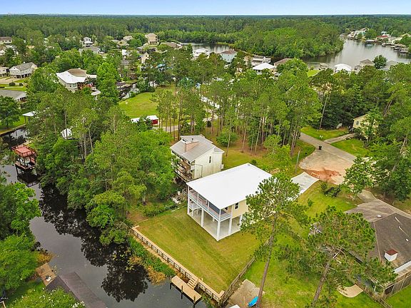 WOW! A beautiful, new waterfront house! This contemporary house is high quality w/ lots of extras such as high ceilings, crown molding throughout, thick granite counter tops, vinyl wood like plank flooring, stainless steel appliances, double oven, laundry room w/ shelving for a pantry, garage, big roll up door on the back, & more. The open floor plan make it great for entertaining & the large master suite w/ a huge closet makes it easy to relax at the end of a long day on the river! 84 feet of new bulkhead & dock. Tons of entertaining space inside & out. Just a 5 minute idle to Jourdan River. Being built 5 feet above the newest code great for insurance costs! This home is far above the normal waterfront home, so come see it to truly appreciate the quality!