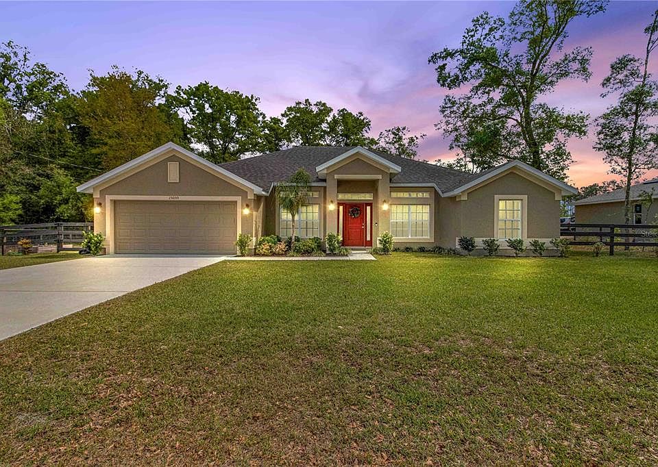 Back up offers only! Welcome HOME! Why wait to build, when you can have this gorgeous home built in 2019 that’s move in ready! This home features 4 bedroom 2 baths, with an extra open office/family room area, ELEVATED ceilings, a COVERED lanai, SPLIT floor plan, and spacious 0.36 acre lot! This yard is FULLY FENCED IN! Enjoy the privacy of having no homes behind you, this is a GEM. In the highly desired Orange Blossom Hills area, there is NO HOA, NO FEES, and you are a few minutes away from all restaurants, shopping centers, entertainment, doctors offices, ETC. Full inspection report and survey available! This house is ready to find its new owner!