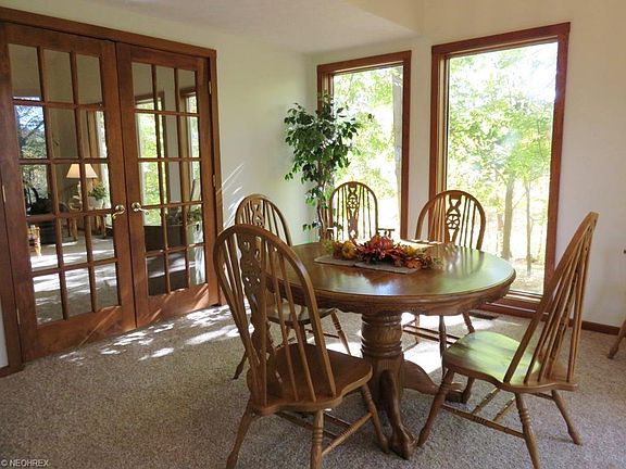 Make memories here living on 1.5 acres with woods plus big yard to garden, have bonfires and play in. This custom home is now on the market for the first time, the owners have taken pride, updated and maintained it for 22+ years! If you need an additional living suite or rental, the walkout lower level has everything you need! Relaxing front porch will greet guests. Open the door to the soaring two story great room that leads to the dining area via French doors. Check out the newer carpeting! The wow kitchen has oak cabinetry, newer counters and flooring and breakfast bar. Retreat to the first floor master suite with garden tub. Both have newer flooring, too! There's also a laundry room and half bath nearby. Upstairs there is a loft area that could be home office, and two bedrooms that share a full bath. Extra storage or play area under eaves. The walk out lower level has pretty hickory kitchen cabinetry, all appliances, plus two bedrooms, full bath and spacious living area. Perfect for family members or previously was a rental. Outside enjoy the brick patio, huge yard and treed lot. Listen to the birds, swing on the swing and grow your own fresh vegetables next spring! House is heated by wood backed up by an electric furnace. A real gem in the heart of Amish country. No worries as buyer will receive a 1 year home warranty!
