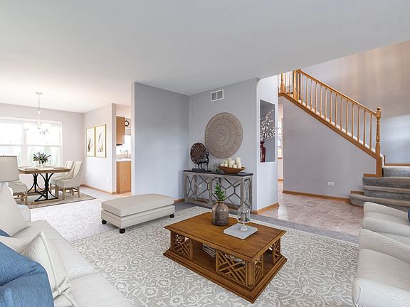 WELCOME to this spacious 4 bedroom, 2.5 bath, home in Lockport's Victoria Crossing. The 2-story family room with cozy fireplace opens to large kitchen with island and generous eat-in area. Sliding doors lead you to the 2-story deck - perfect for grilling and entertaining! Enormous master suite boasts walk-in closet and full bathroom with double sinks. Recent updates include: new carpet in the living room/dining room, new lighting, faucets and fresh paint throughout. Roof and HW heater new in 2018. Ready-to-finish, walk-out basement with roughed-in bathroom opens to covered patio and large fenced in yard. Lots of living space here. A great home!