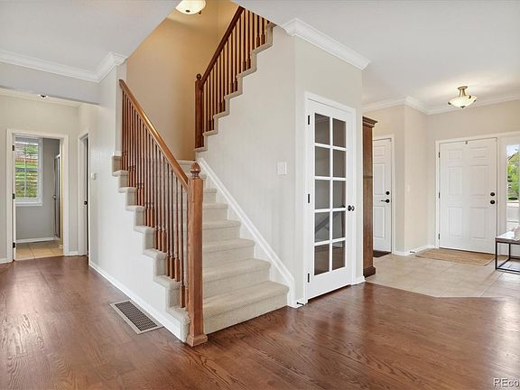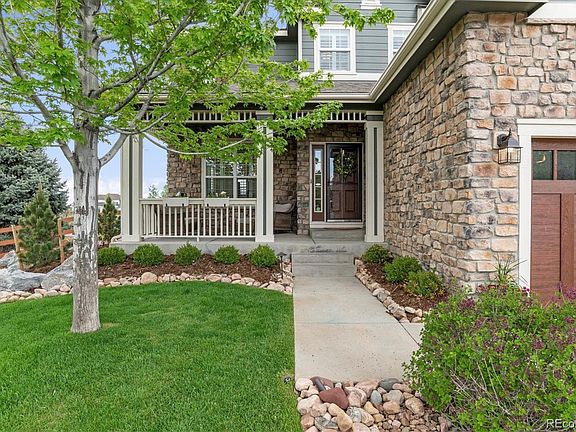 Beautiful home located in the established hillside neighborhood of Wildgrass. With its incredible mountain views, miles of walking trails, pool and clubhouse, tennis courts, 3 playgrounds, planned social and family events, and easy freeway access- this is a highly sought-after neighborhood. Nestled against the green space, at the end of a cul-de-sac, and on more than a 1/3 of an acre, this home offers space, peace, and safety. Professionally completed basement in 2020 that boasts a built-in entertainment center and speaker system, dry-stacked stone, exercise room complete with a full wall mirror and climbing wall, an under-the-stairs play “beach house,” bar with mini fridge, bedroom, 3/4 bathroom, large storage room, and pantry. From the main floor, watch the early morning hot air balloons and evening mountain sunsets through the large picture window in the dining room or on the spacious back porch. The kitchen offers updated appliances, a breakfast bar, tons of cabinet space, and refinished hardwood floors. The open floor plan allows flexibility for a guest room, office, or playroom with a 3/4 bathroom. Upstairs find 4 bedrooms, a full bath, including the master bedroom (offering the most impressive mountain views) with ensuite bathroom, and a conveniently located laundry room. Throughout the home are special touches with crown molding, plantation shutters, freshly painted walls, a whole house humidifier, and attic fan. Outside you’ll find impeccably landscaped front and back yards, new faux-wood garage door, newly painted exterior, recently replaced roof, a raised garden with drip system, built-in fire pit, and the perfect space to slow down, enjoy the quiet after a busy day, and take in all the beauty Colorado has to offer. This home has been loved, meticulously cared for, and is a rare find that you won’t want to miss. Pride of ownership throughout this loved home which you will be proud to showoff to friends and family. Flexible closing date also!!!