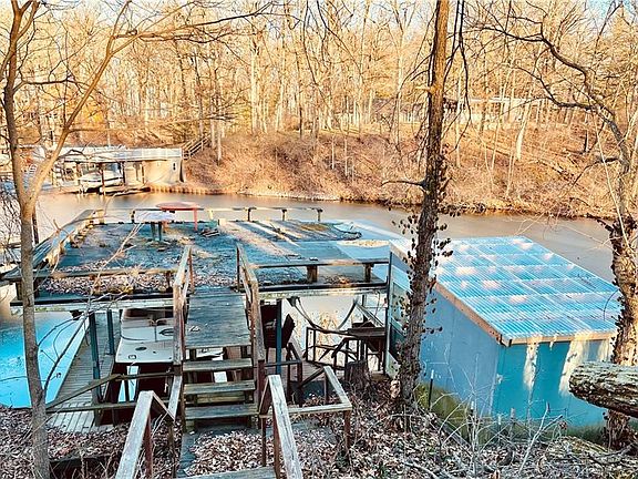 Have you always wanted to own a Lake Home? Enjoy Nature in this Unique, Wooded, Lake Front Getaway!! Beautiful all 4 Seasons! Lots of possibilities as Affordable Year Around Home or Weekend Hideaway.... Ducks, Geese, Birds, Deer and other Wildlife. 0pen Floor Plan, 3 Levels..3 Decks...Vaulted Ceilings, Beams, Sky Lights, Lots of Windows! Swim Deck, Boat House, 2 Boat Slips with motorized Lifts, Sea Wall, Nice Quiet Cove. Detached 2 car Garage with Shelving for Storage, 2 Tall Doors with Openers. There is also a 12x12 Storage Shed and a pole with 30 AMP Service for a Camper. Updates include Roof(6 years old) Cedar Deck, Breaker Box, Replacement Windows, Kitchen Appliances, Bathroom Fixtures, 50 gal Water heater, French Drain across Front of House. Lots of Plantings. Take a Look!