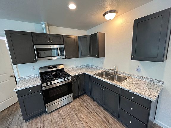 This unit features a private entrance, nicely sized living area, laminate flooring, modern cabinets and countertops, spacious bedrooms with ample closet space, bathroom features hookups for a stackable washer and dryer, parking is available on driveway and street