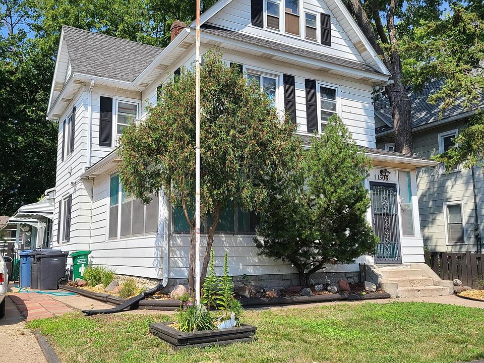 Available only for sale until August 22nd, then to be rented out. Great building and location, the main floor was remodeled and refreshed with gleaming hardwood floors, fresh paint, new trim, a large kitchen, and an updated bathroom, main floor laundry. Central air in both units!! Newer water heaters. Separate laundry areas and separate utilities. Maintenance free siding, most all windows have been replaced at some time, full basement, 2 porches, large storage shed, off-street parking currently on the driveway, The main floor could be converted into a 2 BR unit w some modifications. Large rear yard with no alley, deep 164-foot fenced lot with plenty of room to add a garage!