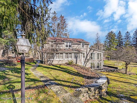 Escape into privacy and relaxed-elegance within this charming two-story residence dating back to the 1800s, nestled amidst the serene beauty of North Abington Township. Unwind amidst sweeping views of the tranquil private pond and natural surroundings. Timeless charm resonates throughout the home, boasting an array of unique features and modern upgrades, including a whole house generator, ensuring both convenience and comfort. Newly installed in May '24, ductless air unit on first floor 24K BTU's. With four bedrooms and two generously sized family rooms suffused with natural light, along with a formal dining room and sunroom, every corner invites relaxation and rejuvenation. This lovely home sits on two acres, inviting gatherings with loved ones to relax in its scenic splendor in the rear of the property. Whether entertaining on the inviting Trex deck or the charming lower stone patio, ample space ensures memorable moments with friends and family. Ideally located just a mile from the Lackawanna State Park, this home offers both tranquility and convenience. Abington Heights/Waverly Elementary provide excellent educational opportunities. Parking and storage solutions abound, completing this exceptional offering.