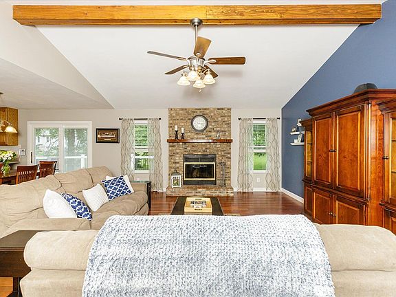 Move-In Ready - Many updates to this ranch home. Extra parking, Extra space behind fence for boy's Toys! Updated Hardwood Flooring, Ceramic Tile, Vaulted Great Room with floor to ceiling brick wood-burning fireplace - Fresh Paint - Updated Hall Bathroom - Main Floor Laundry Room, Freshly Painted garage w/opener, fresh landscaping - Composite Deck - Finished W/O lower level (family room & den/office) Gas Fireplace - Plenty of storage - Fenced Yard - Part vinyl/part chain link - Thermal Pane windows and patio doors with built in blinds. Cul-De-Sac Lot - Seller is offering an HSA Home Warranty.
