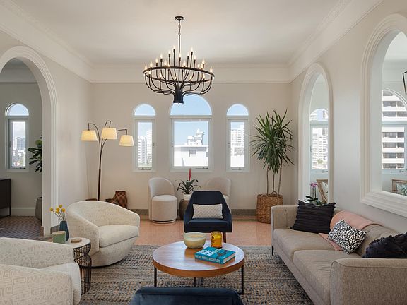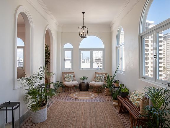 Nestled within a classical building in Condado, Puerto Rico, this 5,200 sq. ft. one-of-a-kind penthouse offers a rare blend of old-world charm and modern luxury. Available for short and long term lease. Enjoy 360-degree views of the city and ocean through expansive windows that flood the living spaces with natural light and create a serene, captivating ambiance. The 2,000 sq. ft. private rooftop terrace is perfect for entertaining or relaxing with the backdrop of the sea. Inside, the home preserves its original charm with 11-foot-high ceilings, beautiful arches, and vintage tile, while offering all the comforts of a modern renovation. The gourmet kitchen, outfitted with high-end appliances, opens to spacious living and dining areas, ideal for hosting or quiet family moments. The master bedroom features a walk-in closet and en-suite bath, while four additional bedrooms provide privacy and comfort. With a private lobby and entrance, every detail in this apartment has been thoughtfully designed. Located in the heart of Condado, it's within walking distance to top private schools, beaches, restaurants, shops, and entertainment. Quick access to major highways makes exploring the rest of the island effortless. Experience the luxury, elegance, and warmth of this exceptional penthouse perfect as a temporary residence or a private retreat in one of San Juan's most coveted neighborhoods. Tenants pay utilities, pets negotiable.