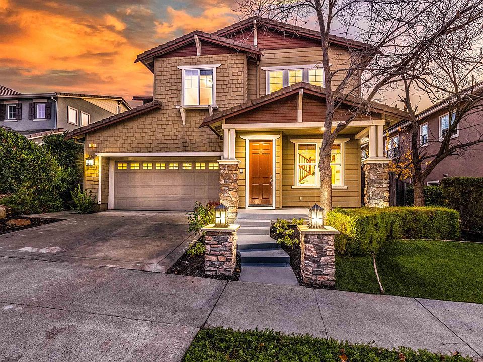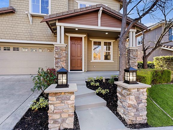 NORTH EAST facing Windemere home at the BEST LOCATION with the BEST FLOOR PLAN layout you can find. $65,000.00 spent in recent upgrades. Former MODEL HOME, 4 Beds, 3 Baths, 2,434 Sq Ft with all LARGER BEDROOMS. DOWNSTAIRS 1 Bed and a Full Bath. Walk into the brightly NATURALLY LIT home with TALL VAULTED ceilings. HARDWOOD floors throughout. Chef's kitchen has GRANITE countertops, WALK-IN PANTRY, and a full BACKSPLASH. Ceiling SPEAKERS for entertainment. Upstairs spacious PRIMARY SUITE with window SHUTTERS, lavish bathroom with intricate TILE WORK, big WALK-IN CLOSET, 2 more Bedrooms with a common Bathroom and a separate LAUNDRY ROOM. Attached 2 car GARAGE, Epoxy flooring with STORAGE cabinets and a long DRIVEWAY. RECENTLY UPDATED Floors, whole house PAINTING, Modern Foyer, Bedrooms LIGHTING, Dining Chandelier, Refreshed Front & BACKYARD landscaping. WALK TO the TOP RATED Live Oak Elementary, Windemere Ranch Middle School, Dougherty Station Library, San Ramon Community Arts Center, Police Station, Sports Park, Hiking Trails & More. No HOA. Do not miss the OPPORTUNITY to make this WONDERFUL HOME yours. Open House Tours Sat & Sun.