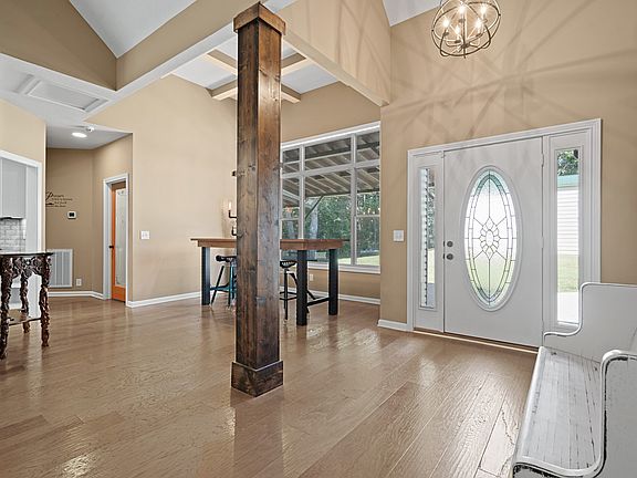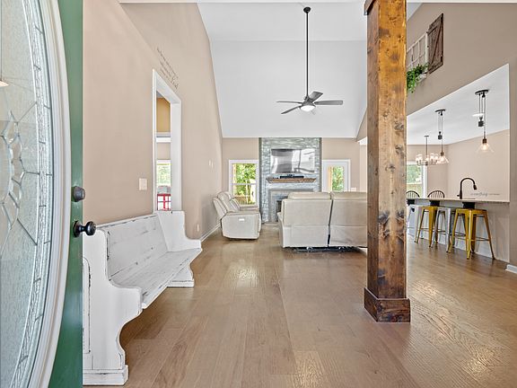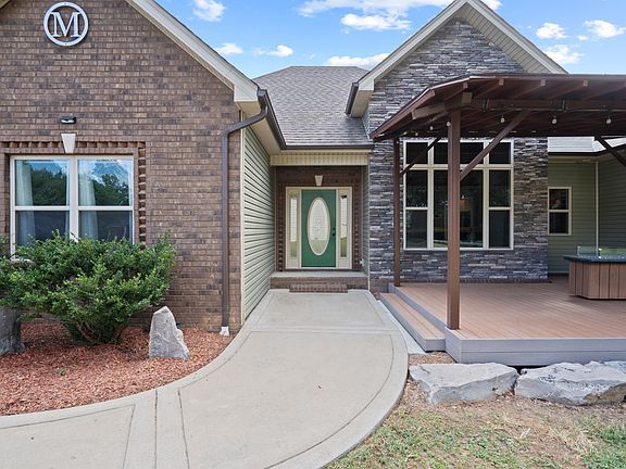 This is a stunning ranch style home with a 24x50ft metal building, just south of the river in Clarksville. Through the front door you are welcomed by high ceilings and natural light into an open floorplan. There is plenty of space to fit your large furniture and entertain your guests. The kitchen features a double oven and gas cooktop along with ample counter and cabinet space, and of course and oversized pantry! The owner's suite is secluded to one side of the house with a great view of the back yard and field to the side. The bathroom includes a double sink and a huge, beautiful, tiled shower, linen closet, and a large walk in closet. On the other side of the house you will find two secondary bedrooms on opposite sides of the extra large mud room, complete with a stand-up shower and laundry area. Additional features include the living space over the garage, covered deck, front porch with trex decking along with a custom-built swing for afternoon naps. Come check it out!