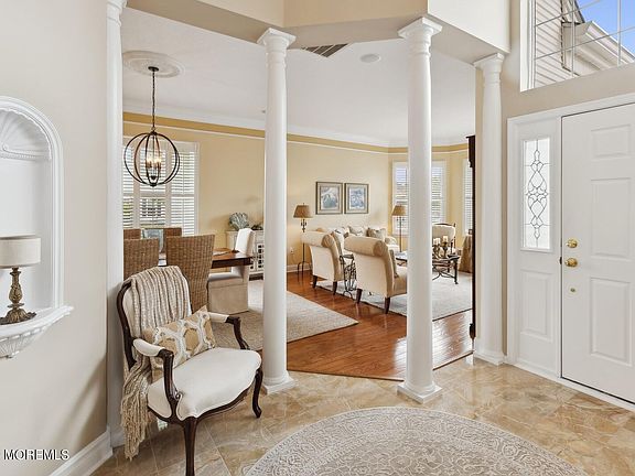 This elegant residence in upscale adult community redfines retirement living with luxury & convenience. Extended Cypress model with 2 sunrooms, extra large primary bedroom with built-in furniture and a wonderful open floor plan, great for entertaining and holidays. The Den can be office/3rd BR. Beautiful crown moldings, built-in Sonos sound system in main areas, large paver patio for al fresco dining and so much more all on a spacious corner property with lots of privacy. Four Seasons caters to active adults seeking a fulfilling lifestyle - This gorgeous home will not disappoint - make this home yours!