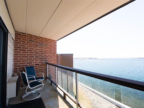 One of the best locations in Newport if you are looking for waterfront under $1 million. Panoramic views of Newport Harbor and the Newport Bridge. Enjoy ocean breezes and sunsets from your balcony. Fort Adams is located to your left. View fire works on the 4th of July and listen to the Folk and Jazz Festival music at no charge! Association amenities include, gated entrance guarded 24-7, a pool with amazing views of the bridge and harbor ( bathrooms, showers and changing area for your convenience), tennis courts, and a beautiful gazebo overhanging the water for you to relax and enjoy or entertain guests. The building has an elevator, beautiful court yard, and a laundry room on each floor. Goat Island also offers the Goat Island Marina (for boat owners), Goat Island Marina Cafe (dining and drinks with views of the harbor) or the Pineapple Cafe (a great place for dining and drinks also located on the water). Everything is within walking distance. Want to head into town? There is a water shuttle that leaves from the Marina for $2 per person. No driving necessary!