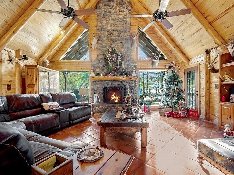 Absolutely Stunning! This true Satterwhite log home is nestled on 20 acres with 2 ponds on property (one is stocked). The grand stone to ceiling fireplace will make you feel as if your in a cabin in the mountains. This luxury home boasts large picture windows, wood beams throughout and impressive tall ceilings. Relax in your backyard oasis complete with gunite pool and spa and watch the wildlife roam. Back half of property is high fenced for exotic deer. Lots of storage in the 30 x 35 shop with tall lean too for RV.