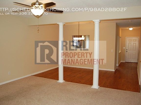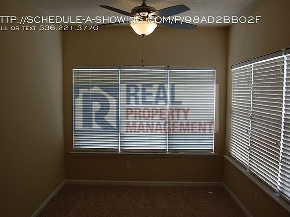 SCHEDULE A SHOWING ONLINE AT: showmojo.com/lh/98ad2bb02f Huge 3 bedroom townhome with approx. 1700SF and 2.5 bathrooms. Sunroom on main level connects to large living room with fireplace and dining area. Kitchen has ample cabinets and stainless steel appliances. Fresh paint and recent flooring. Vaulted ceilings in bedrooms and master bathroom has sep shower and garden tub and dual vanity. Private patio area backs up to common area. Appliances included: Fridge, Stove, Microwave, Dishwasher. Security deposit and lease administration fees apply. You can view this place on your own, at a time that is best for you. To do this copy and paste the following link in your web browser: https showmojo.com/l/98ad2bb02f Or call to schedule your showing! 336-355-6688 Marketed by Real Property Management of the Triad Fresh Paint Garden Tub Microvave Range/Oven Separate Shower Sunroom Vaulted Ceilings