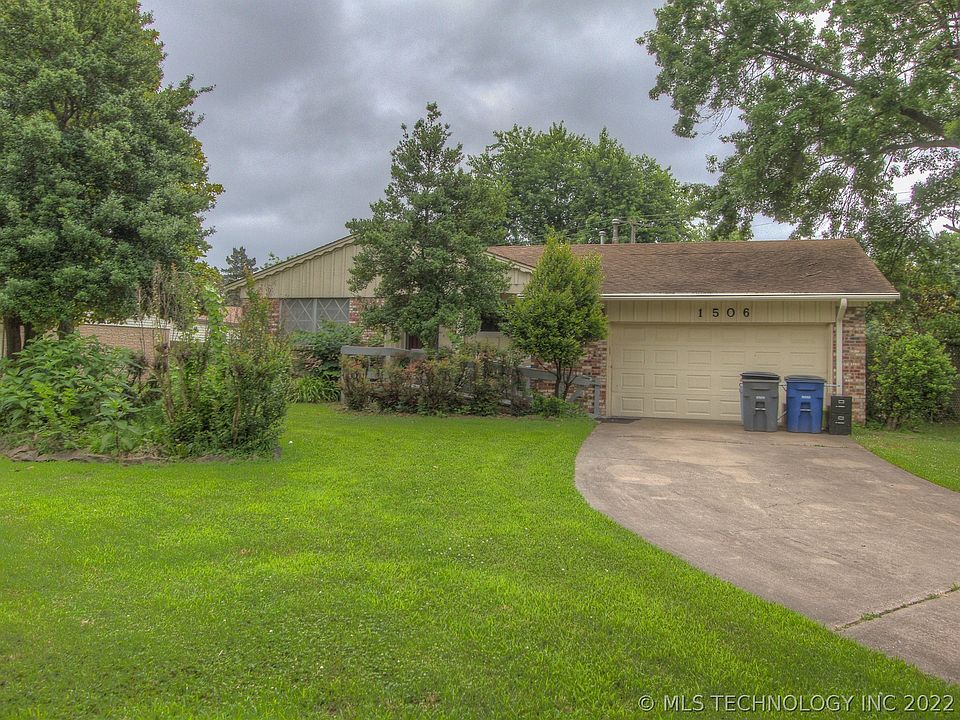 Well built older home in established neighborhood with trees. New kitchen cabinets, granite, backsplash and flooring 1 year old. 2 living areas. Walk in shower and walk in closet in master bath. Fireplace in dining area. Lots of storage, large deck and fenced back yard. Oversized garage with utility. Refrigerator, washer & dryer can stay. Sold as-is.
