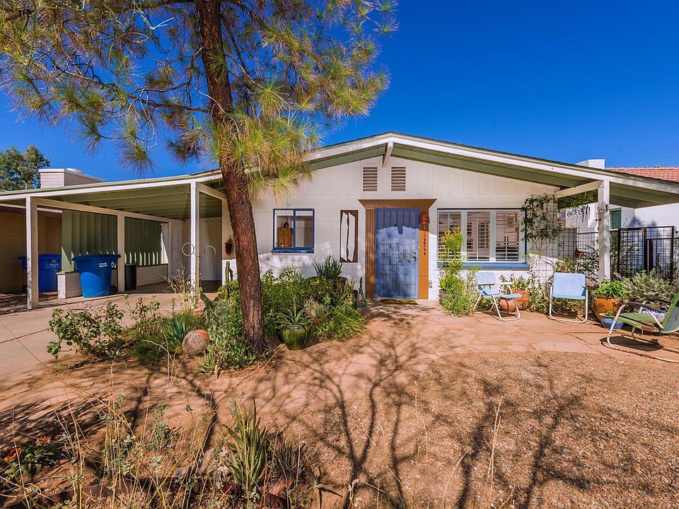 Very special Coronado bungalow with separate 480sf heated/cooled art studio/office or guesthouse for extra income. Don't miss this one! Lovingly maintained by longtime owner. Vintage charm combined with tasteful modern upgrades.Incredible yard w fish pond and waterfall is a peaceful sanctuary and amazing entertaining space with spacious brick patio.Newer roof, new kitchen 2018, lovely dining area with art lighting. Updated baths, The master bedroom suite has a wonderful vintage bathroom with walk in shower, large closet, built in storage, interesting nooks and niches throughout. Bedroom opens out to the color explosion of desert flowers, huge mesquite tree and the sound of flowing water. Laundry/crafts room. $7500 closing cost credit and possible $10K grant available thru Bank of America