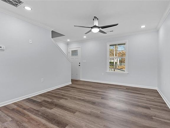 MOVE-IN READY, 2-level brand NEW construction with a one-car attached garage. No carpet! Luxury Vinyl Plank (LVP) flooring throughout both levels. Granite countertops in kitchen and bathrooms. The primary bedroom features a 10-foot vaulted ceiling and recessed lighting. En suite primary bathroom offers a stand alone shower (with glass doors and tile), separate tub with an ample window for natural light and walk-in closet with elegant shelving. Step out to a 12x10 cement patio for outdoor enjoyment. The ample, cleared lot is your canvas. Convenience is key, 5 min drive to the IHFC, the hub of the Furniture Marketplace and High Point University. Don't miss this opportunity; make it yours today! 1504 E Commerce Ave next door (white vinyl) - same floor plan - also listed and move-in ready. Call GCS to inquire about School Choice Zone options.