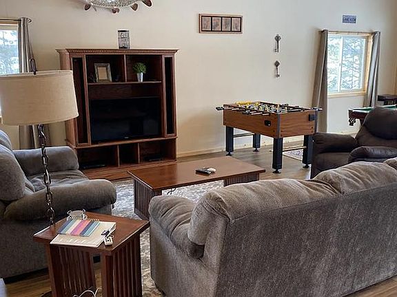 WOW, a like new home available on the chain of lakes? On Eagle Lake? With Sand Frontage? YES! If you want main level living, a level lake approach, access to BIG WATER & in great conditionthen look no further. Built to be a rental (with numbers to prove it) the huge gathering space in the main room will delight you; its perfect for groups to relax, play & just be... The floorplan also offers 6BR & 3BA, one being a lakeside primary suite. The approach to the water is mild & the views are stunning! Youll LOVE, almost as much as the home, the amazing use of all the lakeside outside space. It is park-like with the huge patio, the ping pong table, ginormous firepit, kids play area, & so much more! Minutes from downtown Eagle River & all its conveniences, this is the perfect blend of inside & outside spaces, lakefront living & income generating newer constructionkeep it & use it for yourself or continue to share it with others so everyone gets a piece of the good life!