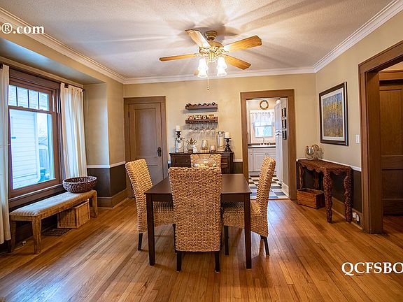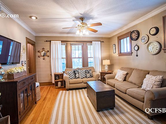 Absolutely charming 2 bedroom, 2 bathroom East Davenport bungalow! Nothing to do but move in! Gorgeous original hardwood floors, trim, & doors. Spacious front porch. Nice size living room, formal dining space. Updated kitchen with new cabinets, and stainless steel appliances. Waterproofed Finished basement includes rec room, second full bathroom, nice laundry area, and ample storage space. Step out back to your nice patio & fully fenced back yard! 1 car garage! Walk up attic has future finish spaced, or plenty of extra storage! Convenient location close to to schools, Genesis East, and parks! Many updates- roof 2010, furnace & air 2014, water heater 2012, replacement windows, and new garage door & sensors 2016. Radon mitigation system in place. Call for your showing today!