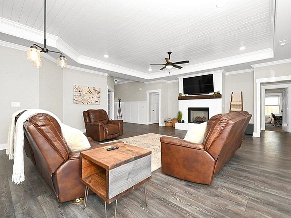 Amazing DREAM floor plan! Everything is on ONE level not to mention this home is sitting on a huge lot, 0.80 ac. m/l. Open floor plan, huge living room w/ tray ceilings and ventless gas fireplace. Kitchen with massive pantry, large island, gas cooktop, all stainless appliances, refrigerator remains. Dining area, breakfast table area, separate office, 5 bedrooms, 3.5 bath, 3 car attached side facing garage. Master bedrm has huge walk-in closet, tray ceiling, bathroom with double vanities, shower and freestanding tub. Seller has added huge privacy fence and extended the back patio concrete area. So many extras and upgrades including tankless hotwater heater, crown molding, shiplap, full sod yard, and more. This home is a must see! Take a look today.