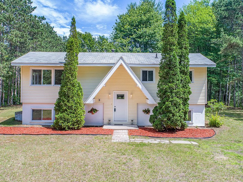 This bi-level has been completely redone from the drywall in. Two full baths, solid service counter-tops, main bath has two sinks, tile surround, white cabinets, new windows, new carpet in the lower level, wood floors in main level, dining area leads to 12x16 deck with new decking. All this on 1.95 acres. Schedule your showing today!!