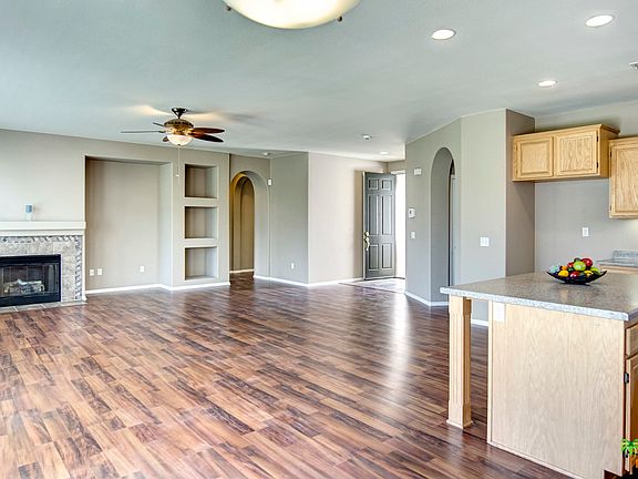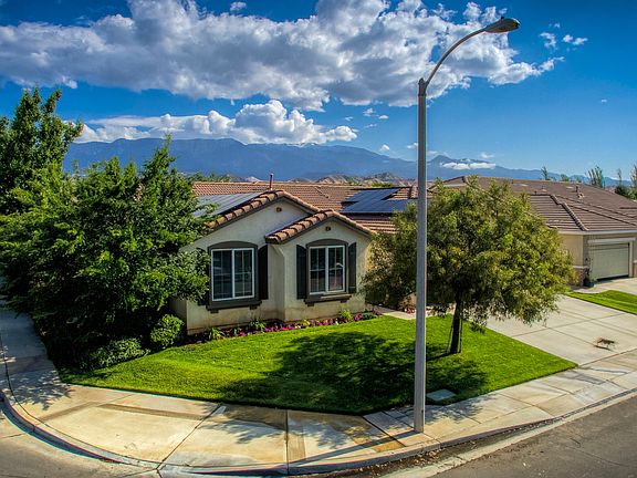 Location! Location! Location! This 4 bd/2 ba home in the Sundance Community is centrally located to some of the most desirable schools, parks, shopping & restaurants Beaumont has to offer and it is just minutes to the 10 & 60 freeways. Ready for new owners, new laminate floors with fresh paint throughout. Large living area with plenty of windows which provides for a light, bright space & has built in shelving and a decorative fireplace. Spacious open kitchen with large island that you can use as counter seating and has plenty of counter & cupboard space with a new built-in overhead microwave. Master bedroom with large walk in closet and separate shower/tub, two vanity counters & sinks. Master suite is on one side of the home and guest bedrooms and guest bath are on the opposite side. Front and back landscaping is complete with beautiful views of the mountains. Leased solar panels = low electricity bills! Inside laundry room. 3 car garage. Low HOA's. Call to see this home today!