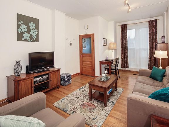 Extra wide rowhouse with hardwood floors throughout. Spacious kitchen with center island and table space. Gorgeous, sunny master bedroom with tall windows. Custom plastered walls. Entertain friends in the private garden patio (or maybe a potential parking pad!). Newer HVAC. Walking distance to shops, restaurants and parks. Check out virtual tour link for interactive floor plan!
