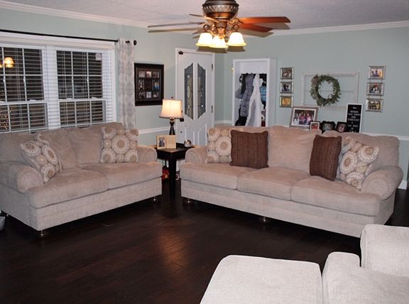 Hardwood throughout, tiled bathrooms, open floor plan, back patio/storage room is a work in progress. Call or text 256-677-8763 for more details if you are interested.