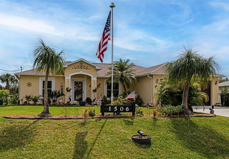 Welcome to your serene retreat nestled in the heart of North Port! This charming 3 bedroom 2 bath home has been meticulously maintained. The home provides a spacious living room that features high vaulted ceilings and an open floor plan perfect for entertaining. The charming kitchen has solid wood cabinets and stainless steel appliances along with a breakfast bar. The dining room offers a cozy spot for family meals or intimate gatherings. A new roof (2021), Septic clean out (2021), New hurricane windows and slider doors with metal hurricane shutters along with an upgraded well water system. As you walk outside to your private oasis where lush landscaping, a patio, grill area and a tranquil fish pond with Japanese koi fish awaits with plenty of room for a pool! This home has been cherished by it's owners and now it's ready to welcome you with open arms!