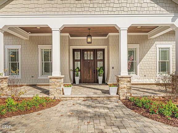 Coastal Craftsman at its finest! This Griffin Mitchell build will wow you from the moment you first see it. Located on a corner, with nearly an acre lot & partial lake views. It checks all the boxes. 3 bedrooms with a flex room that could be used for an office or a 4th bedroom, an entertainers kitchen & outdoor space with a pool, hot tub, grill, & gas fireplace. A 3 car garage with an additional workroom & plenty of storage space. Wild Heron is a gated community on the West end of Panama City Beach, home to Florida's most beautiful beaches. Located in the perfect spot, you can enjoy the entertainment of 30A or Pier Park in a 10-15 minute drive either direction, 25 mins to NWF Beaches airport (ECP). Resort style amenities include, a fitness center, pool, hot tub, paddle boarding, &much more