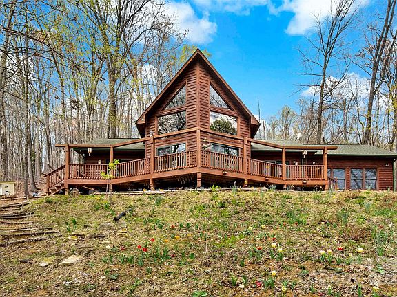 Welcome to Josie Acres. A-frame home with 10+/- scenic acres just east of Asheville. Turn-key with furnishings included. With its rustic charm and modern comforts, it's a perfect mountain retreat for full or part time living. Inside, exposed wood and hardwood floors create a cozy atmosphere, while large windows offer mountain views. The main level features an open living area with a stone fireplace and a well-equipped kitchen with new stainless appliances, two large bedrooms with deck access. Upstairs, a loft provides space for relaxation or work (and yes it has views too!) The front of the home offers a spacious deck. Garage with paved driveway and paved road frontage. The seller has nurtured flora natural to our mountains, developed and maintained a network of trails, and built an apiary of several beehives (ask for more info). It is a true gem. Be sure to ask your agent for additional notes. 24 hour notice for showings. M-F 5-7 Sat/ Sun 10-7