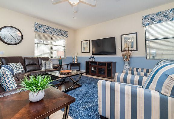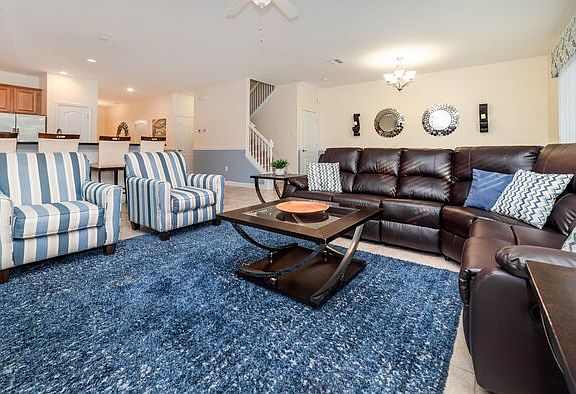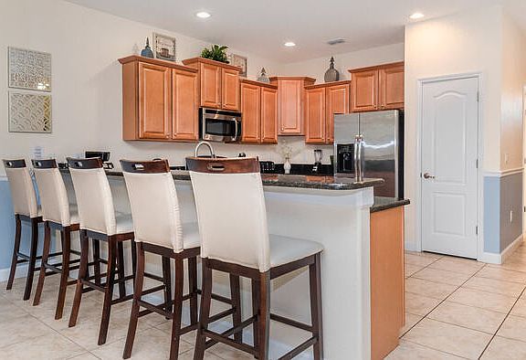 This property is a corporate rental. Please note that the monthly rental price for this property is dynamic and subject to seasonal adjustments. For an accurate quote, provide us with your intended move-in and move-out dates. ChampionsGate Resort Vacation Pool Home - includes resort clubhouse amenity access! Our 9 bedroom, 5 bathroom, private vacation pool home is a great option for families wanting a home base to enjoy the best of all that Central Florida has to offer. * ChampionsGate Resort Private Pool Home Sleeps up to 27 * 9 bedrooms / 5 bathrooms * Private Pool w/ Spa - South Facing * No Rear Neighbors * Game Room including Pool Table and Foosball * ChampionsGate Resort Gated Community * 10 miles to Disney World property * Fully equipped Kitchen with seating for 8 at the dining table, and 5 spots at the breakfast counter BEDROOMS (First Floor) - Master Suite 1 - One King Bed / Attached Bathroom - Master Suite 2 - One King Bed / Attached Bathroom BEDROOMS (Second Floor) - Bedroom 3 - One King Bed / Shared Bathroom - Bedroom 4 - Two Twin Beds - Bedroom 5 - One Queen Bed / Shared Bathroom - Bedroom 6 - One Queen Bed / Shared Bathroom - Bedroom 7 - Two Double Beds - Bedroom 8 - One Twin Bed and One Double Bed / Shared Bathroom - Bedroom 9 - One Twin Bed over One Twin Bunk Bed, One Twin Bed over Double Bunk Bed, and One Twin Bed over Double Bunk Bed Pool & Spa Charges and Information: There is an additional optional charge of $30 per day plus tax to heat the pool/spa. The spa will not warm up without the added pool heat. Please note that our pools are serviced on a weekly basis. Resort Parking Rules: The resort allows a maximum of 5 cars (or 3 large passenger vans). Do not block the sidewalk or park on the street or the resort will fine you. For visitors, there is a maximum of 10 cars per property. ChampionsGate Resort Amenity Access Included with Rental: We are pleased to offer two clubhouses at Championsgate Resort- this property is located closest to the Oasis Clubhouse It is a 2-minute drive or 10-minute walk to the Oasis clubhouse from this property address. * Huge resort-style pool with pool-side cabanas * Exciting water slide * Relaxing windy lazy river * Interactive children\'s splash park * State-of-the-art fitness center * Movie theatre * The Grille restaurant * full-service restaurant * 18-hole challenging golf course * Pool-side tiki bar * Playground * Volleyball courts Distances from Resort to Shopping & Attractions: * Walt Disney World - 10 miles * Universal Studios - 21 miles * SeaWorld - 18 miles * Orlando Airport - 30 miles * Atlantic Coast Beaches - 78+ miles * Gulf Coast Beaches - 84+ miles * Publix Supermarket - 2 miles * Walmart - 7 miles * Dining - 2 miles Why Choose this Rental? * Professionally managed to serve all your needs * Management company has over 26 years of experience hosting well over 200,000 families * Go straight to your rental with online email check-in * 24/7 on-call maintenance * No Resort Fees * Free On-Site Parking * Smoke-free and pet-free for your comfort * Towels and linens are provided * Complimentary WiFi * Additional Rental items Available (e.g., 3 & 4 burner BBQs, cribs, pack-n-plays, strollers, high chairs, etc.) Our starter welcome packet supplies: * 2 rolls toilet paper per bathroom * 2 round hotel-size bar soap per bathroom * 1 hotel-size shampoo/conditioner per full bathroom * 1 roll paper towel * 1 packet dishwasher detergent * 2 trash bags size-13-gallon * 1 small box laundry detergent (enough for one load) * Garbage can liners in each bedroom/bathroom small garbage cans Any supplies beyond this are up to the guest to replenish, we do not restock these items. No salt/pepper or cleaning supplies are stocked due to safety issues. This is an industry-standard practice. FOR GUESTS WHO BOOK 30 NIGHTS OR LONGER STAYS: (this does not apply if you are staying less than 30 nights) We will collect a $1,500 deposit. Balance is due 60 days prior to arrival If canceled 90 days or more before arrival, we keep with us $250.00. $1,250.00 will be refunded. If canceled between 61 and 89 days prior to arrival, we keep with us the $1,500.00 deposit. No cancellation or modification 60 days or less prior to arrival. Contact us to schedule a showing.