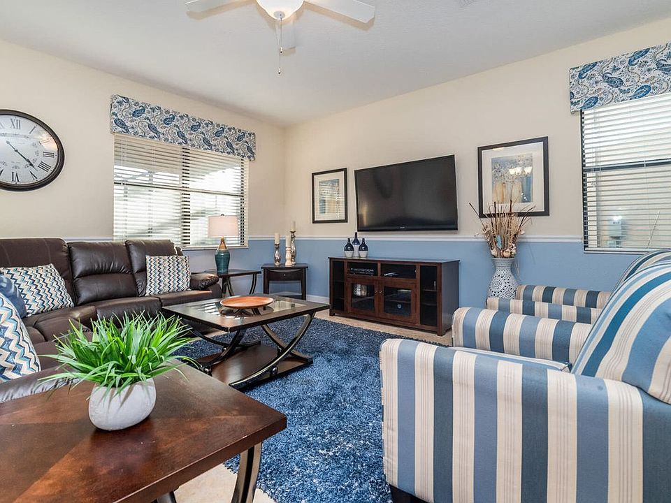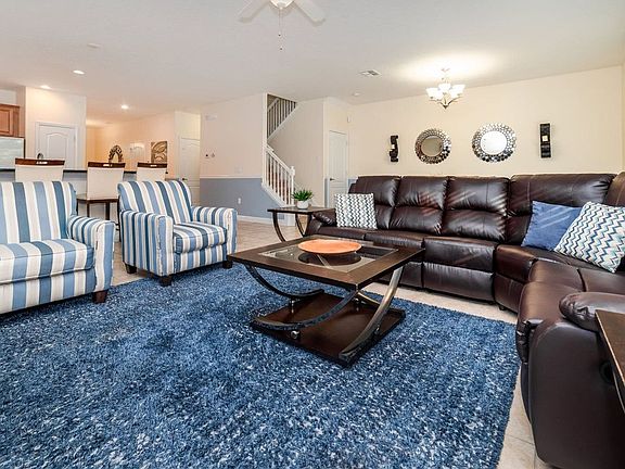Welcome to this expansive 9-bedroom, 5-bathroom vacation pool home located in the prestigious ChampionsGate Resort. This private retreat offers a spacious living environment perfect for families, with a fully equipped kitchen and dining area that seats up to 13 guests. Enjoy the luxury of a private south-facing pool and spa, a game room with a pool table and foosball, and the privacy of no rear neighbors. Situated just 10 miles from Disney World, this home provides a perfect base for exploring Central Florida's attractions. This home is designed with comfort and entertainment in mind. The fully equipped kitchen is perfect for preparing meals, with seating for 8 at the dining table and 5 additional spots at the breakfast counter. The game room offers a pool table and foosball for family fun, while the private pool and spa provide a relaxing retreat after a day of adventure. For an additional charge of $30 per day plus tax, guests can heat the pool and spa. The resort allows a maximum of 5 cars or 3 large passenger vans, with additional parking available for visitors. Guests can also rent additional items such as BBQs, cribs, pack-n-plays, strollers, and high chairs. Located in the gated community of ChampionsGate Resort, this home offers easy access to a range of amenities. The Oasis Clubhouse, just a 2-minute drive or 10-minute walk away, features a resort-style pool with cabanas, a water slide, a lazy river, a children's splash park, a fitness center, a movie theatre, and dining options. The property is conveniently located 10 miles from Walt Disney World, 21 miles from Universal Studios, and 18 miles from SeaWorld. Nearby shopping includes Publix Supermarket and Walmart, both within a short drive. This property is smoke-free and pet-free for your comfort. Complimentary Wi-Fi is provided, and towels and linens are included. Guests can enjoy free on-site parking, and there are no resort fees. Check-in is streamlined with online email check-in, and 24/7 on-call maintenance is available. A starter welcome packet is provided, but guests are responsible for replenishing supplies beyond the initial stock. The property management company has over 26 years of experience, ensuring a professional and seamless stay.