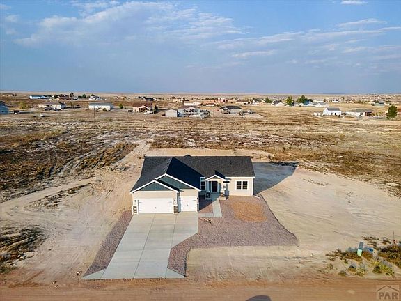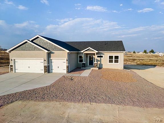 Spacious one-level living! This spectacular ranch-style home will definitely impress you! As you head inside this home, you find the dining room which is just off of the entry way and a spacious living room straight ahead with built-in shelves and a cozy electric fireplace. The living room opens up nicely to the kitchen for an open-concept design. The Kitchen has recessed lighting, a pantry, stainless steel appliances, gorgeous white cabinets, a large center island with quartz countertops, counter bar seating and more. Just off the kitchen is the breakfast nook. It has large windows and a walk-out to the backyard where you'll find lots of room for entertaining. The master suite is very spacious and adjoins a 5 pc master bath with quartz countertops and a walk-in closet. The laundry/mud room has access to the 3 car attached garage with 2 garage door openers. Front yard will be xeriscaped. Located in beautiful Pueblo West on Acreage Lot located by Lake Pueblo.