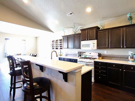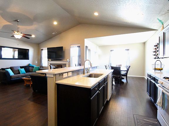 Better than new rancher w/ an incredible territorial view stretching to downtown Spokane! Popular floor plan with 1,800 sq. ft on 1 level, highlighted by a spacious kitchen w/ quartz counters, island & huge pantry. Features include engineered hardwoods, vaulted ceilings, gas fireplace, 5-piece master suite, covered front porch, extra deep finished garage & a brand new, expansive composite deck. Convenient River Run location in Hutton school district w/ neighborhood park & river access! Don’t miss it!