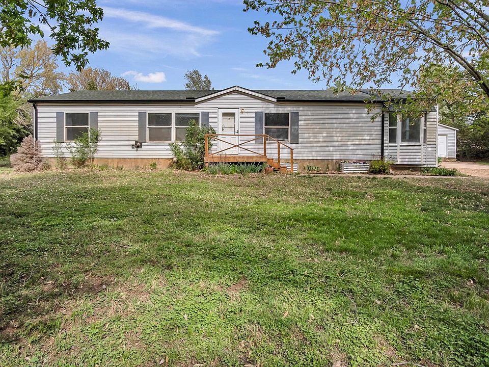 Welcome Home to your Perfect Piece of Country Living! Tucked away from the hustle and bustle of the city you will enjoy retreating to this Gorgeous Country Property on over 7 Acres, laid out with Winding Paths and Trees throughout, making your use of the property entertaining, attractive, and easily organized for different purposes. Wildflowers and Nature are plentiful with a broad variety of local fauna calling it home as well! Homey and spacious, The Main Living Area is open to the Dining and Kitchen affording flexibility in Entertaining with access to the large Back Deck with Pergola. There is plenty of cabinet and countertop space in this kitchen and all appliances remain! The Gas Range will be a Favorite for Sure! The Primary Bedroom with Hardwood Floors is nicely sized and features an Attached Bathroom with Tub/Shower Combo and Corian Countertops. Next door to the Primary Suite is the Bonus room that could serve as an Office, Hobby Room, or as another bedroom with the addition of a door. The Split Bedroom Plan continues past the Generous Kitchen to 2 Guest Bedrooms, one of them Oversized with a large Walk In Closet with Custom Shelving. The Guest Bath with Corian Counters and Shower is situated between the guest bedrooms and the Large Laundry/Mud Room at the back of the home. You are sure to appreciate coming in from enjoying the outdoors directly into this space with storage and all the room you could ever wish for while stashing your boots and outerwear! A Detached 2 Car 24x24 Garage with Electric and Opener, and a 29x29 Utility Barn further support the needs of Rural Living. What else could be better? This Home and Garage features new Gutters and a New Class III Impact Resistant Roof proudly featuring Tamco Titan XT Shingles! Don’t Miss Your Chance at Snatching up this Piece of Paradise While it Lasts! This Home is on a Permanent Foundation and has Financing Options from a Variety of Lenders for Conventional, FHA, and VA!