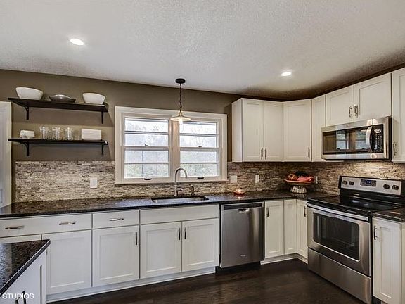 AMAZING REMODEL IN LIBERTY SCHOOL DISTRICT. Completely updated hard to find ranch home with an open concept. Hardwood floors throughout, with stunning accent wall and fireplace. Custom features galore from the granite, lighting, and bathroom fixtures. Kitchen is contemporary and open to the living room with a large island. Home has a great fenced in back yard with new landscaping. Home is on a quiet street with large trees. This is a MUST SEE.
