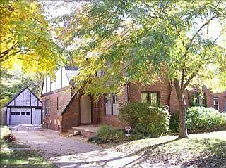 This wonderful all brick tudor in Riverside has had many updates. Move right in, it has all been done for you. Large living room with an ornamental fireplace, formal dining room with French doors and an updated kitchen with an island/eating bar and pantry, plus an additional eating space in the kitchen. All kitchen appliances remain with the property. One main floor bedroom plus two additional spacious bedrooms upstairs. New interior paint restained hardwood flooring, and new light fixtures. The basement has a separate walkout door. This basement has a separate workout room and there is plenty of room for a rec room. Very usable basement. If you love Riverside you will love this home! Nice deck, East facing backyard and oversized garage with work bench space. Fenced backyard and mature trees!